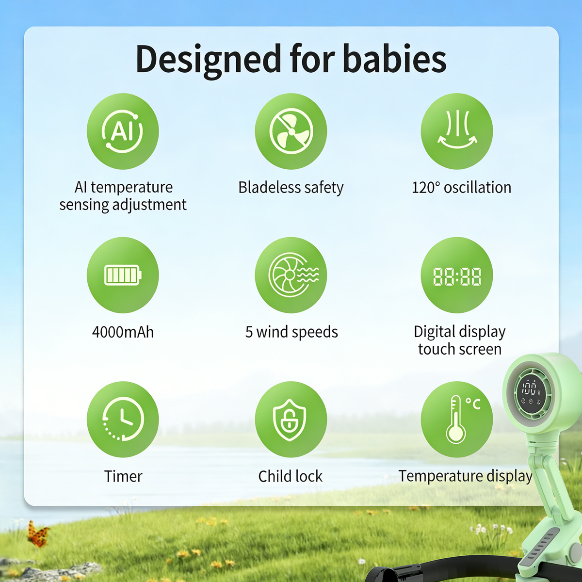 - Baby-safe fan